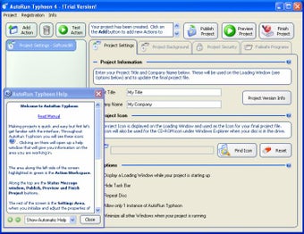 O AutoRun Typhoon não impõe limites para a criação das telas de apresentação. Você pode misturar imagens e texto com animações em Flash, vídeos ou páginas web. Um assistente acompanha o processo do começo ao fim.
